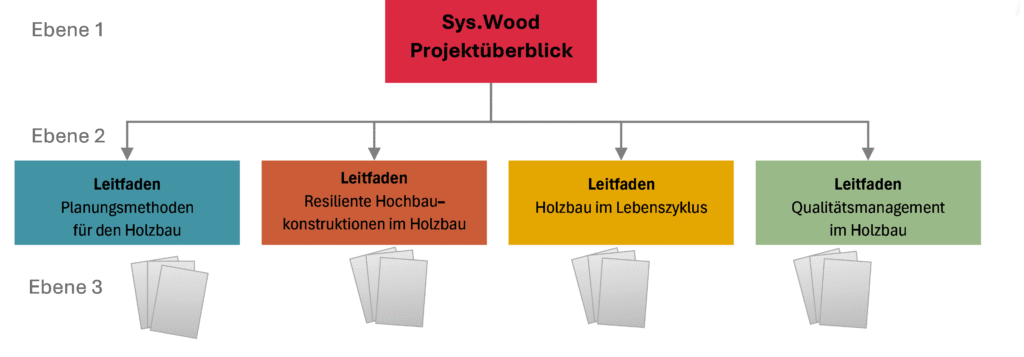 Sys.Wood bietet Empfehlungen zur systematischen Weiterentwicklung und Prozessoptimierung für die österreichische Holzbaupraxis. Das kooperative Forschungsprojekt aus Wissenschaft und Praxis stellt eine interdisziplinäre und praxisnahe Betrachtung sicher. Die Bearbeitung erfolgte in vier fachlichen Arbeitspaketen die gemeinsam den gesamten Lebenszyklus von Holz-Hochbauten beleuchten.